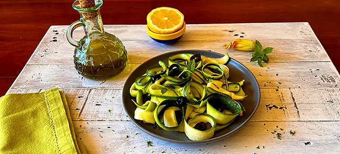 On a beau adoré les courgettes, on manque parfois d’imagination pour les cuisiner différemment. Voici une recette qui va vous plaire avec ses tagliatelles de courgette crue, assaisonnées de jus de citron et miel et de quelques feuilles de menthe.
